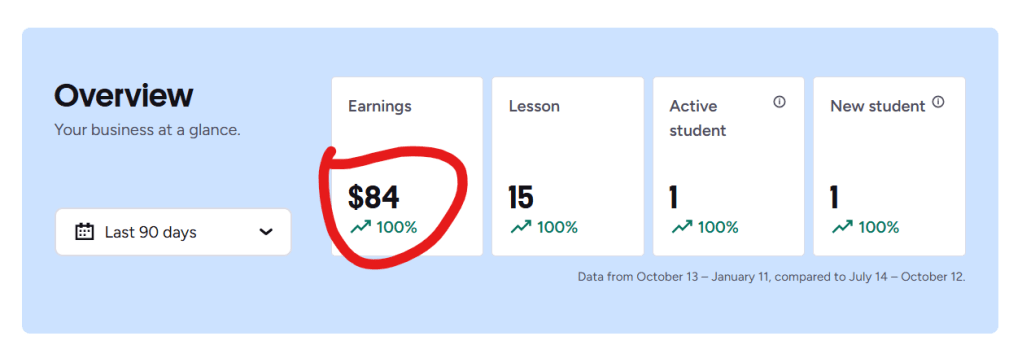 You don’t earn from trial lessons (Preply keeps the fee). This can feel rough early on when you’re doing several trials just to land students.